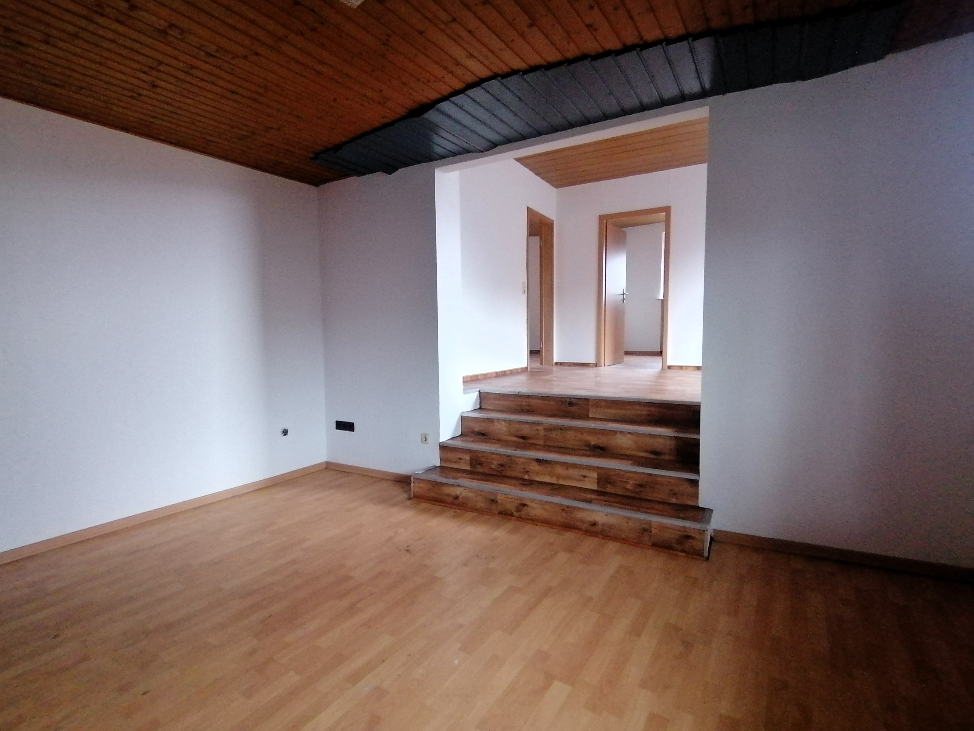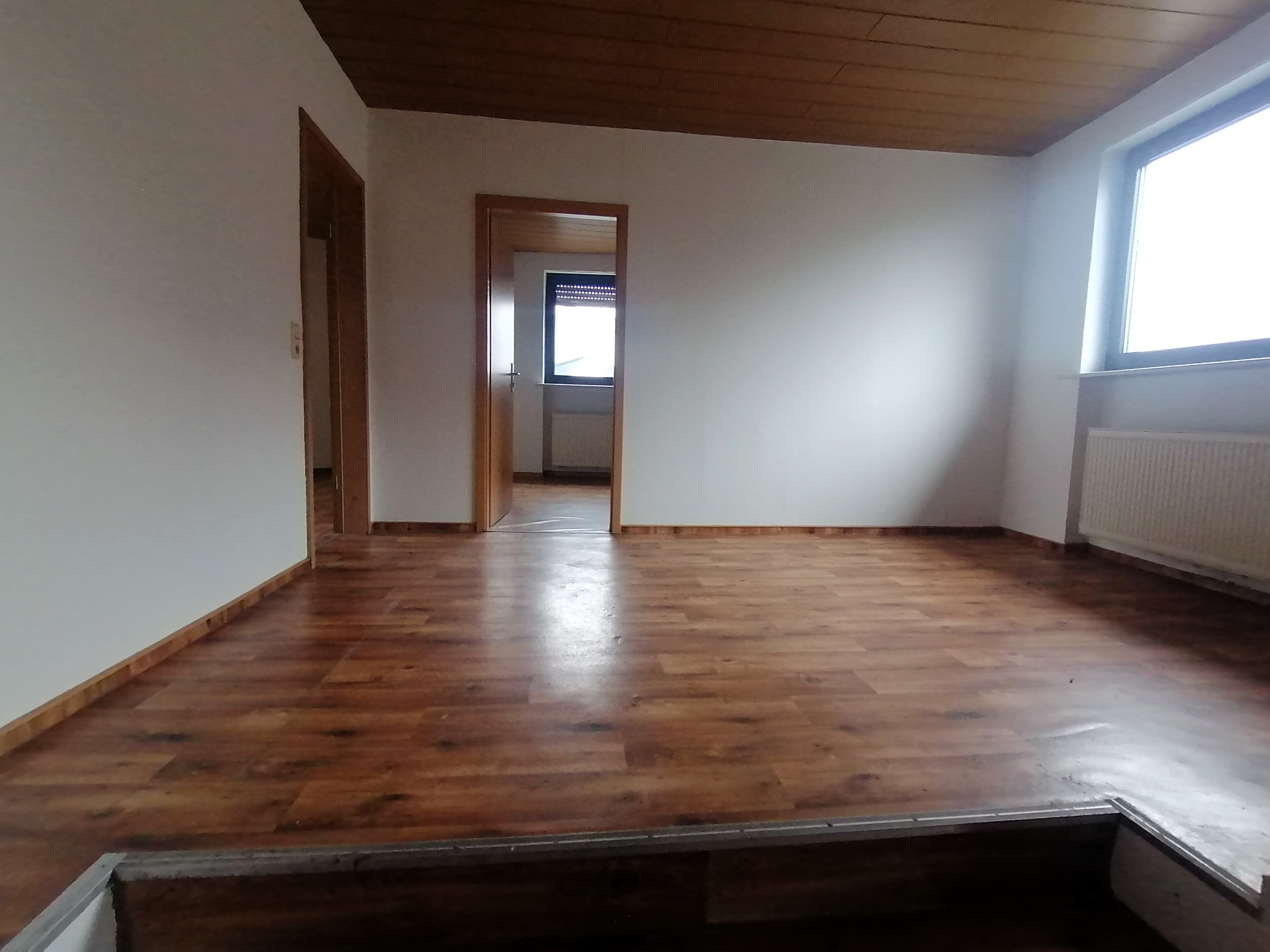 Bei dieser Immobilie handelt es sich um ein Wohnhaus in der Ortsmitte mit einer großen Wohneinheit im 1. und 2. Obergeschoss sowie einer kleineren vermieteten Einliegerwohnung im Erdgeschoss. Da in jeder Etage der großen Wohnung ein Badezimmer sowie eine Küche vorhanden sind, ist es durchaus vorstellbar, das Objekt auch als Generationenhaus zu nutzen.
