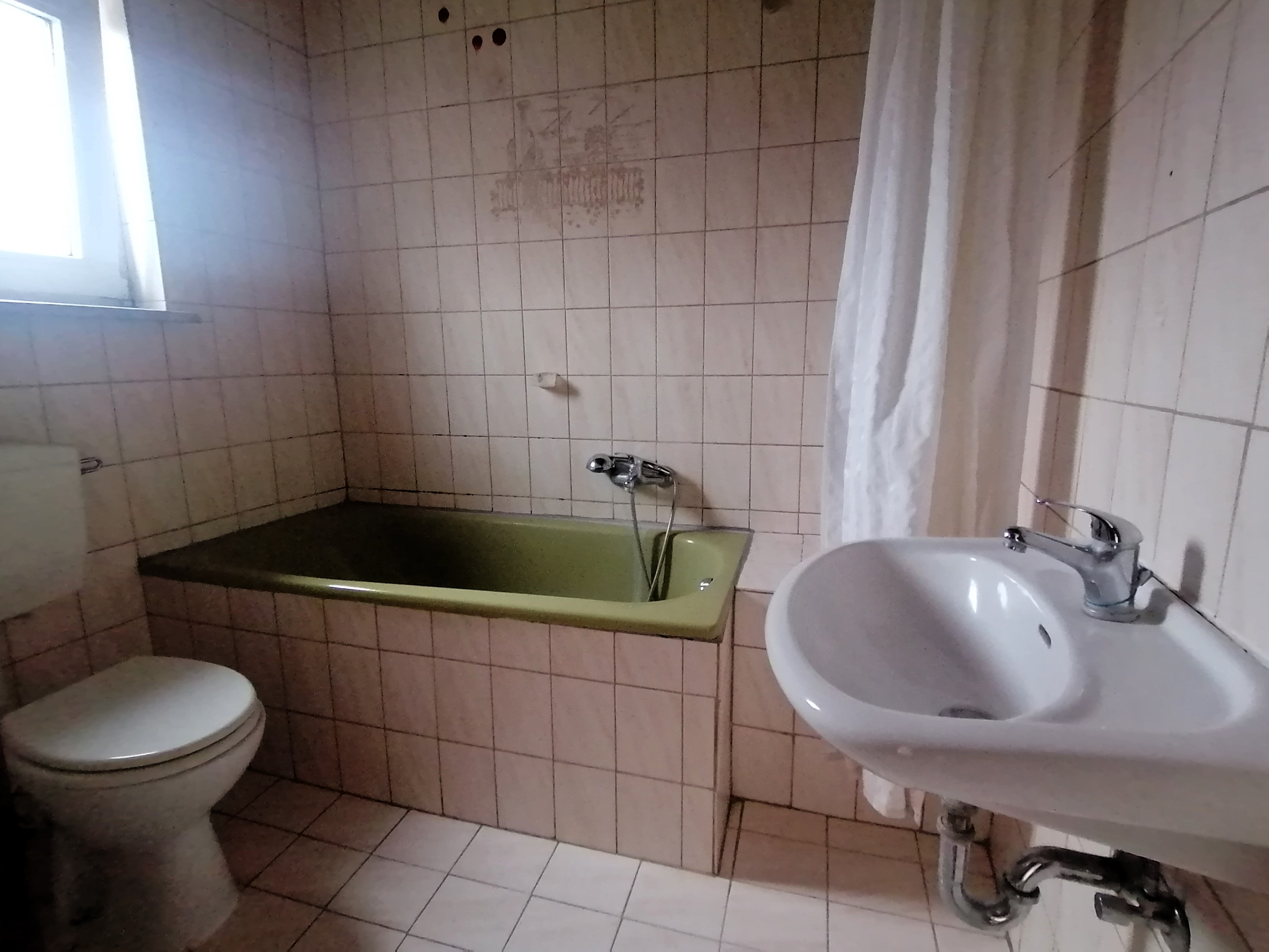 - Ausstattung des Bades Badewanne, Dusche, Fenster