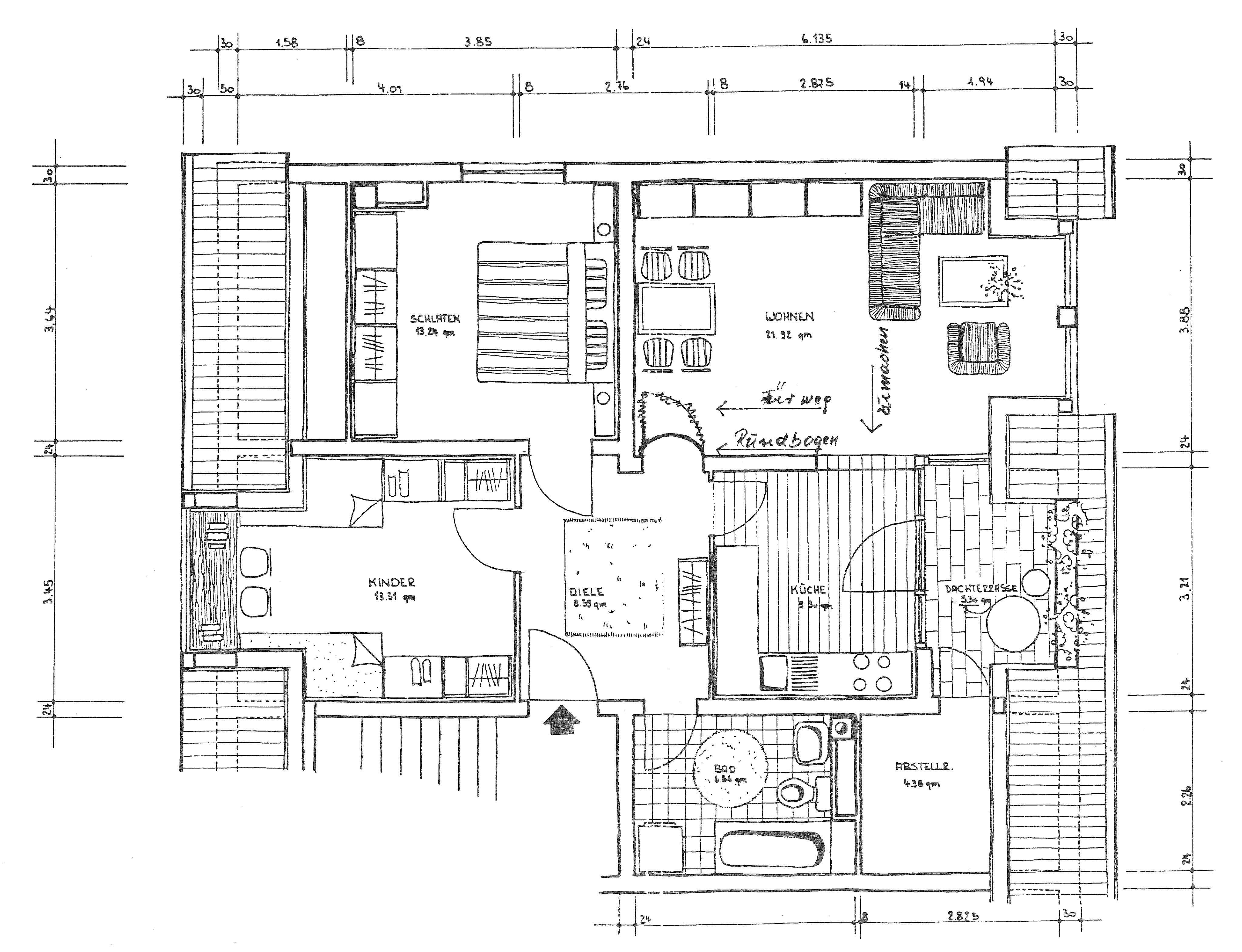 Diese Dachgeschosswohnung in einem Mehrfamilienhaus eröffnet Ihnen von der Loggia aus einen schönen Blick ins Grüne in Richtung des nahegelegenen Schlossparks.